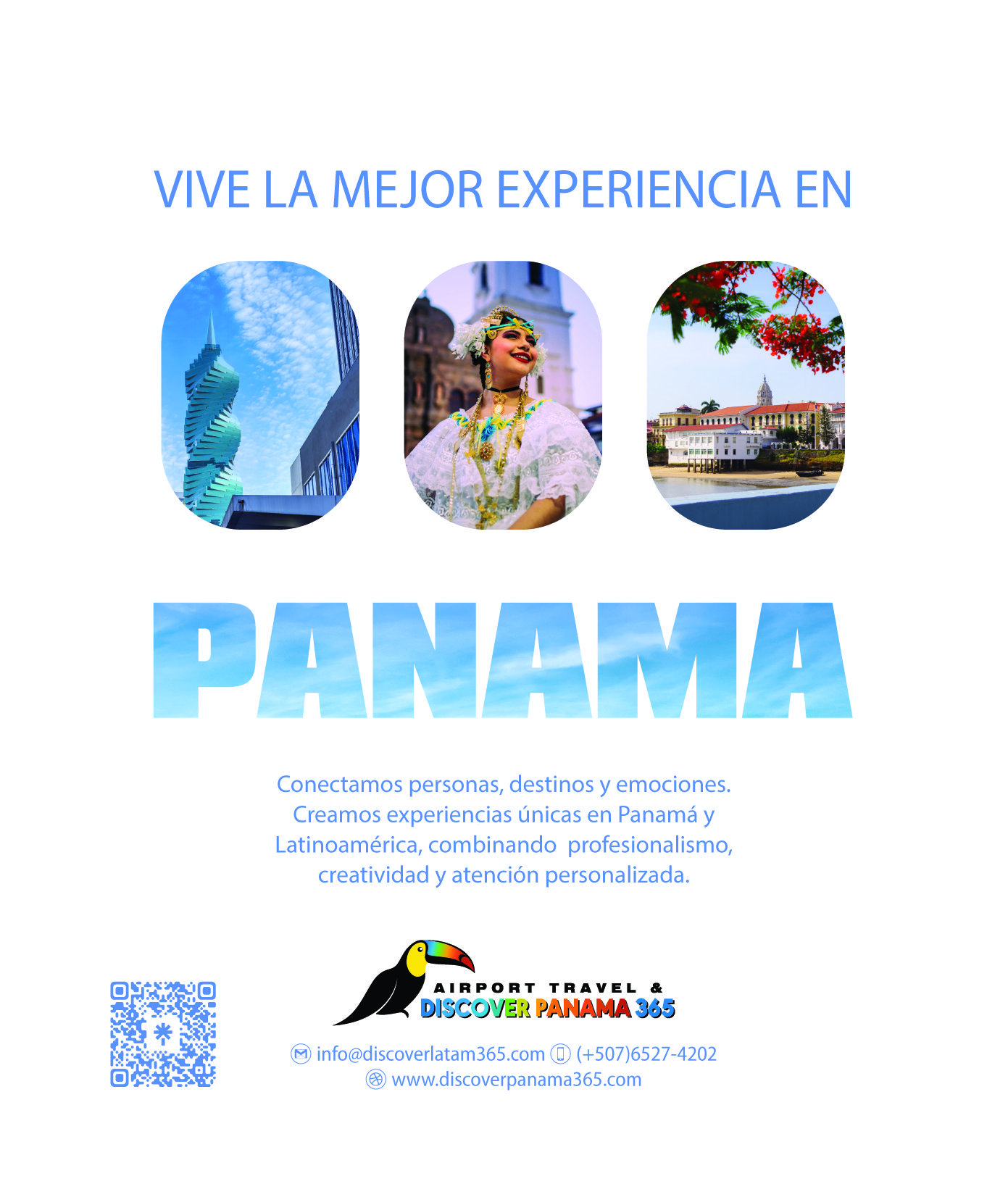 Airport Travel & Discover Panama 365 es una empresa mayorista especializada en la creación y operación de experiencias de viaje en Panamá, Latinoamérica y el Caribe. Diseñamos programas a medida para el segmento Leisure, Corporativo y MICE, integrando hoteles, traslados, tours y eventos. Nos enfocamos en ofrecer un servicio cercano, eficiente y orientado a generar experiencias memorables que conecten a cada viajero con el destino.